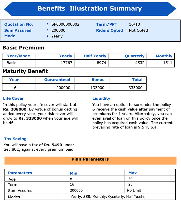 • Being a with-profits plan, it is an ideal choice for savings, enhanced returns, and insurance protection in one product.